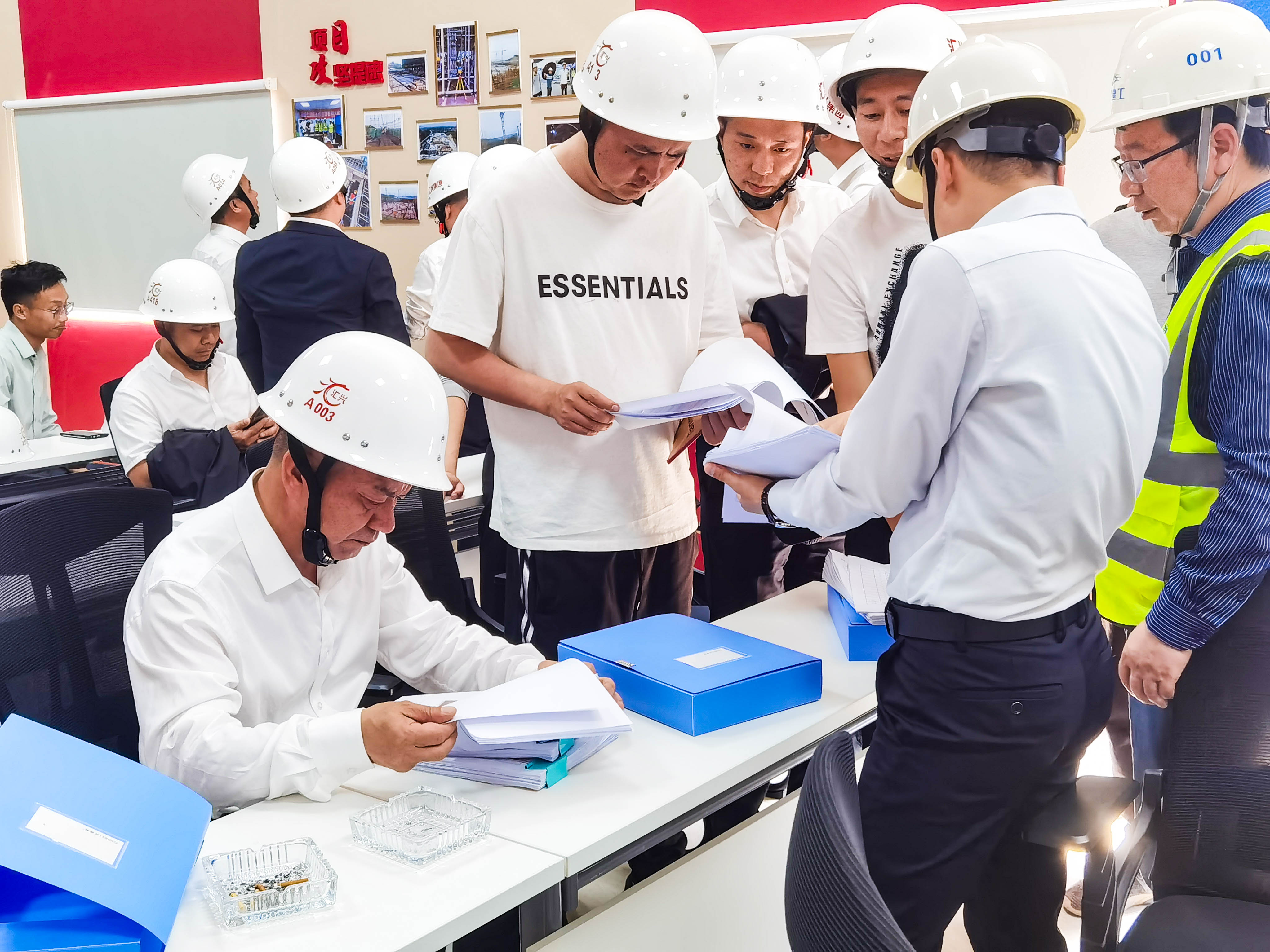 在項目現(xiàn)場,觀摩團聽取了相關(guān)負責(zé)人對施工建設(shè)、外架施工工藝、標準化工地建設(shè)等情況的匯報,并對先進施工工藝、安全資料管理、項目黨建活動開展情況進行了交流學(xué)習(xí)。