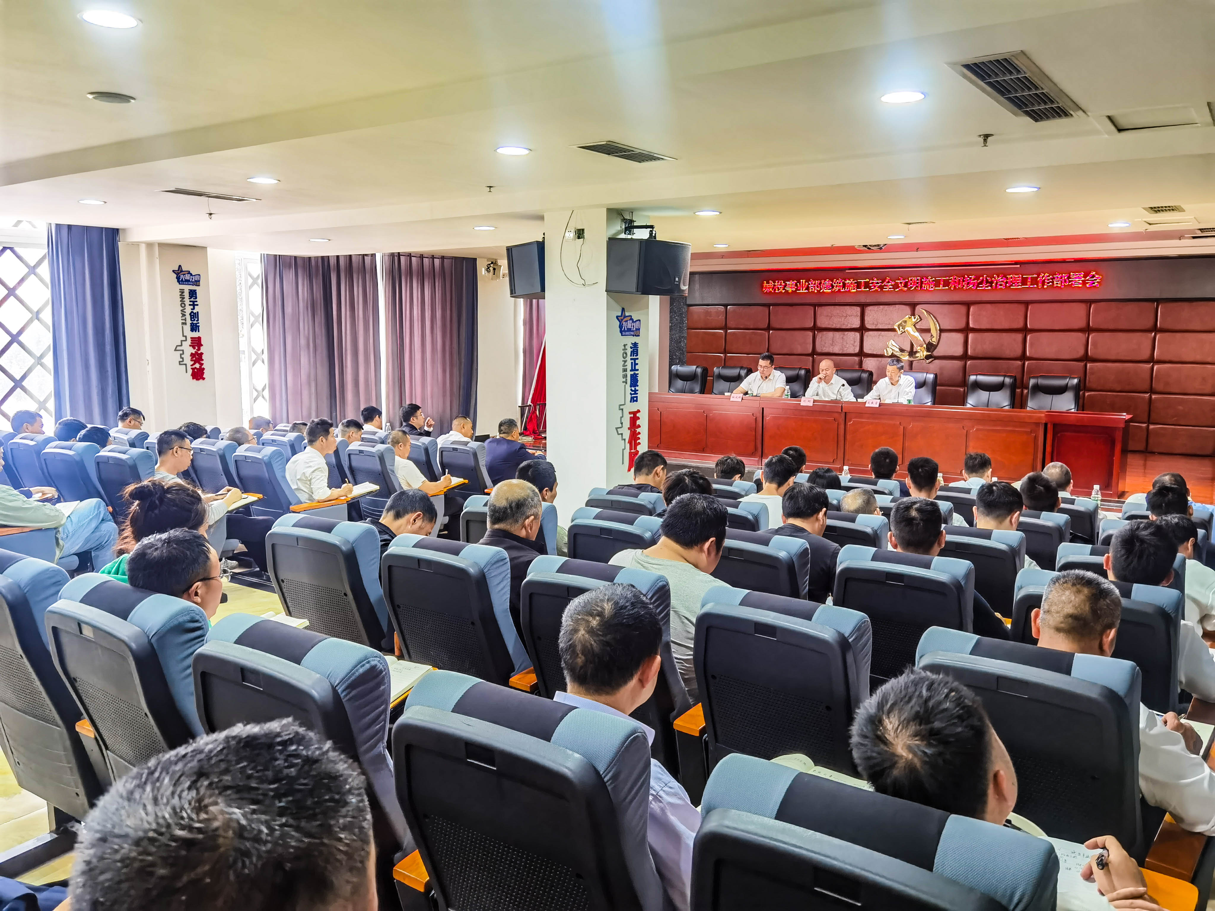 觀摩結(jié)束后召開建筑施工安全文明施工和揚塵治理工作部署會。會上,城投事業(yè)部各公司負責(zé)人作交流發(fā)言。劉總肯定了近年來公司在項目管理工作中取得的成績,分析了當(dāng)前形勢下項目管理面臨的挑戰(zhàn),并指出項目管理過程中需要高度關(guān)注的突出問題,對下步工作作安排部署。